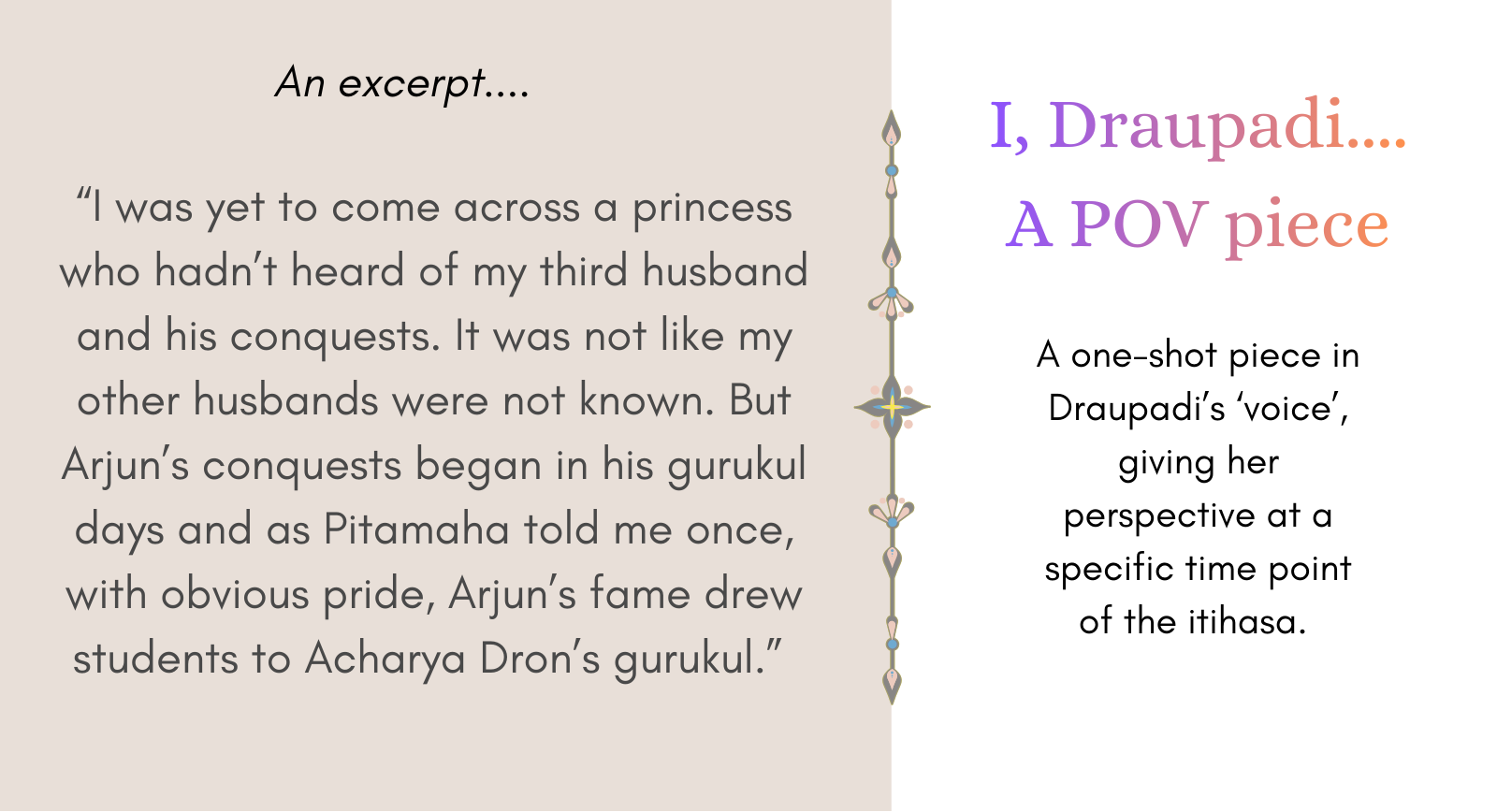 This platform, Aitihasika, is my space for sharing what I know and what I keep discovering about the Mahabharatha.
